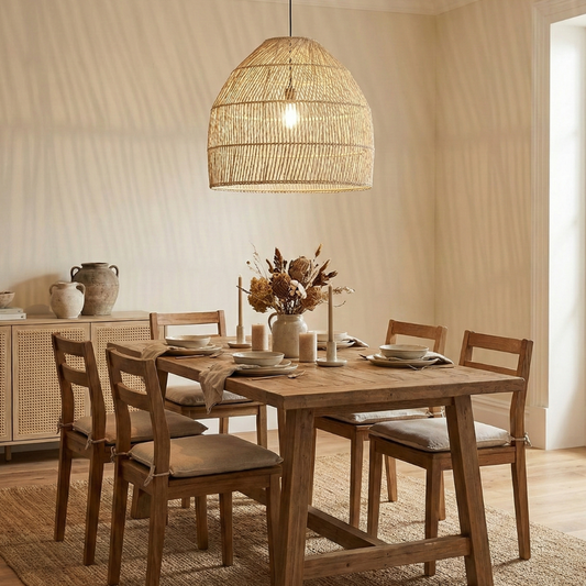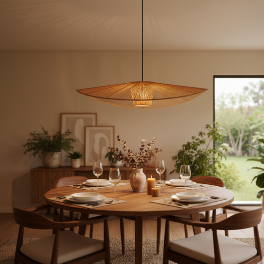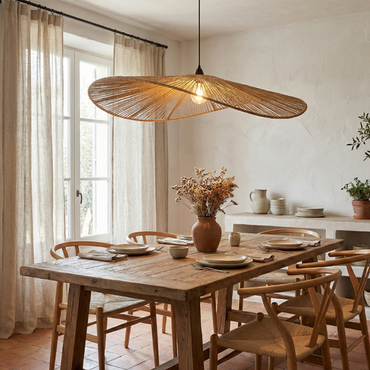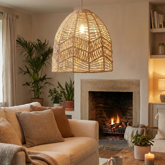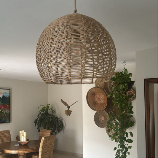 Pantalla lámpara tejida de palma