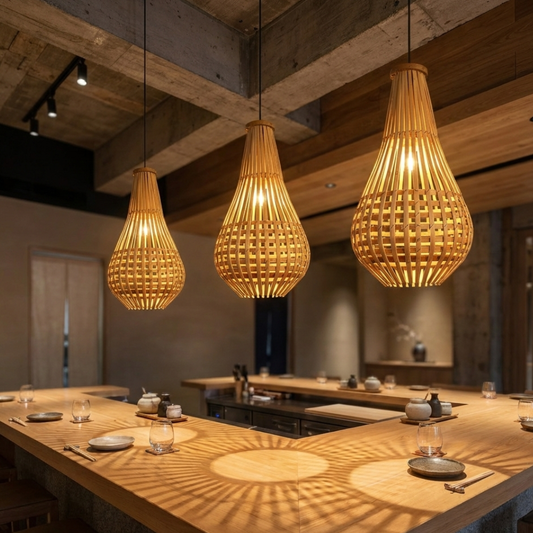 Pantalla colgante tejida de carrizo