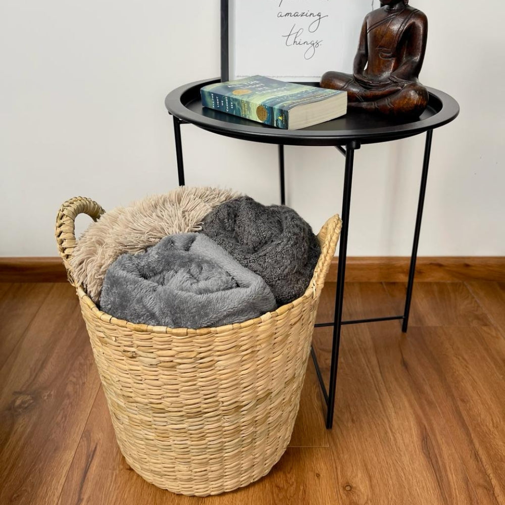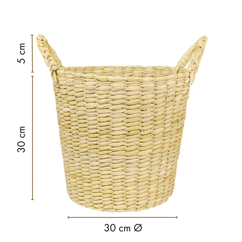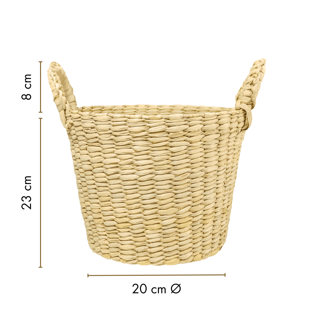 Fabricado completamente de tule natural, este cesto es compostable, contribuyendo al cuidado del medio ambiente.
