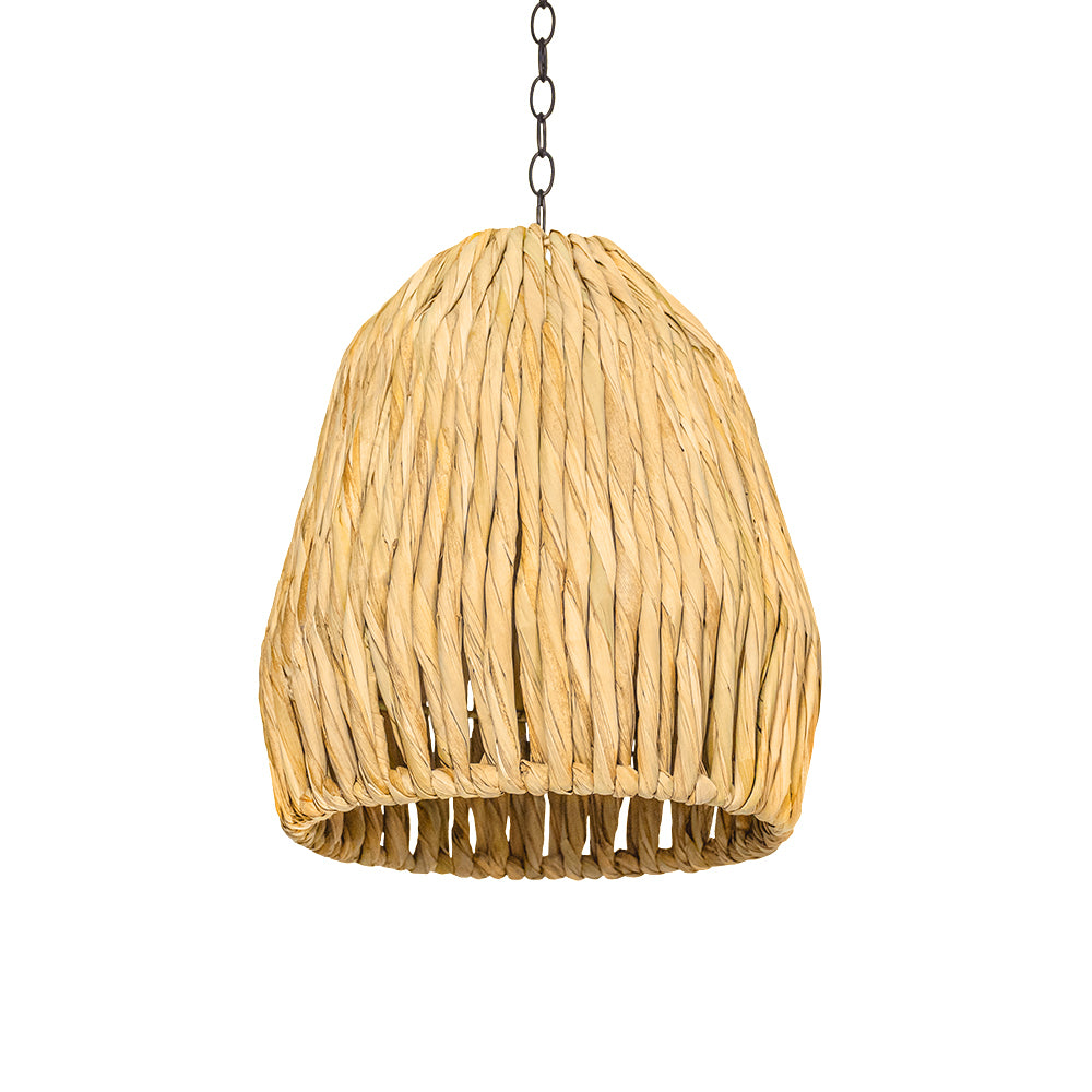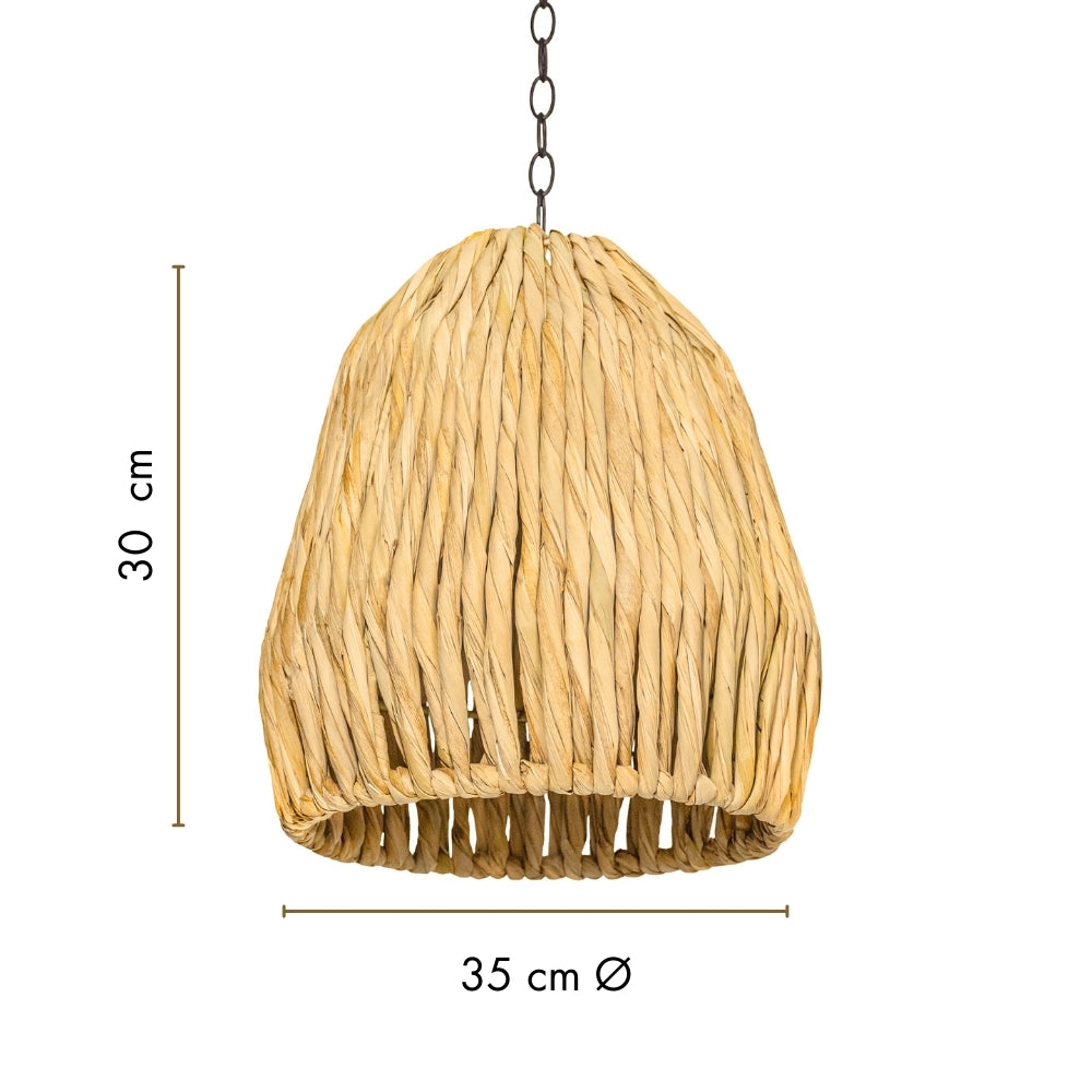 Pantalla tejida a mano de tule natural. Con un diseño natural y sencillo, esta lámpara añade un toque rústico y acogedor a cualquier ambiente interior o techado.