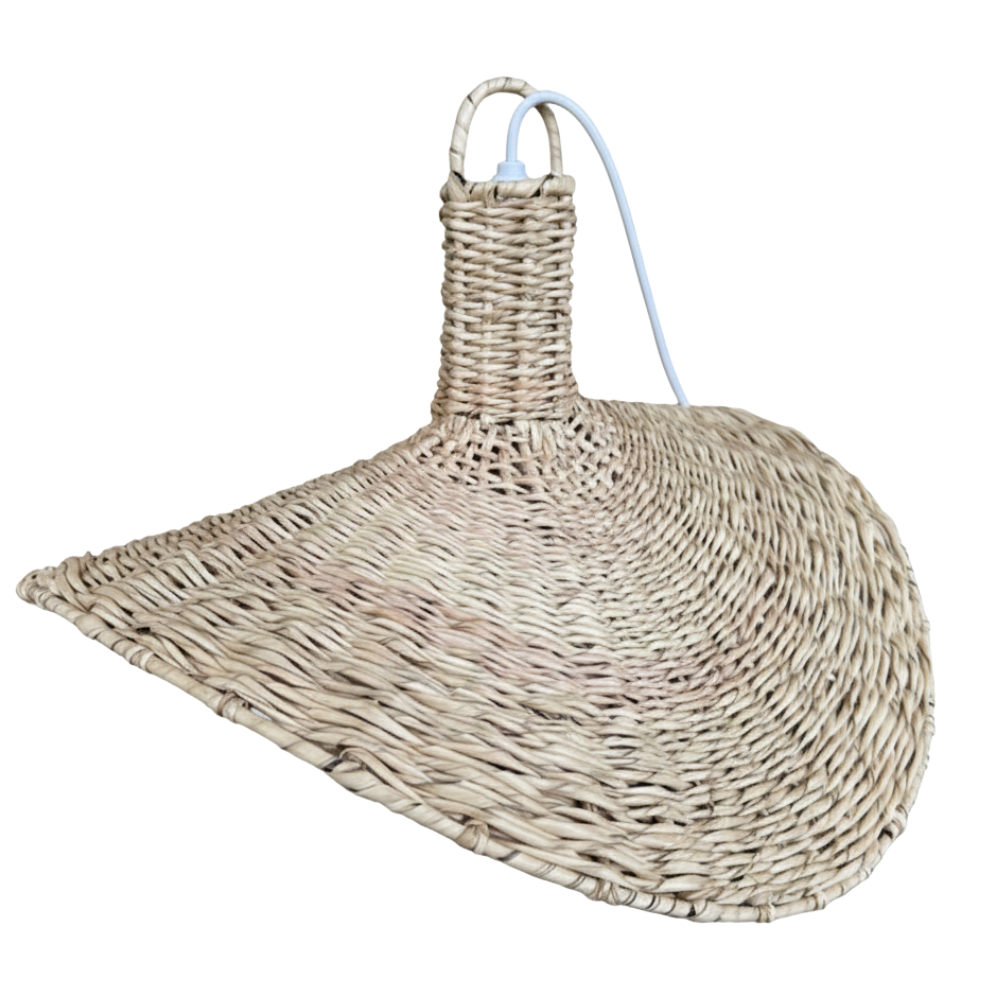 La pantalla Tonalli es tejida por Lourdes y su familia en Guerrero, México. Trabajan la palma desde la recolección hasta el tejido, siguiendo técnicas tradicionales que se han transmitido de generación en generación. Cada pieza se elabora a mano, cuidando la tensión y el acomodo de cada vuelta para lograr una forma equilibrada y resistente. Al elegir esta lámpara, apoyas directamente el trabajo de familias artesanas y la preservación de su oficio.