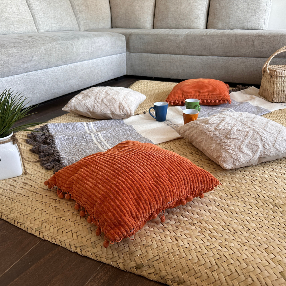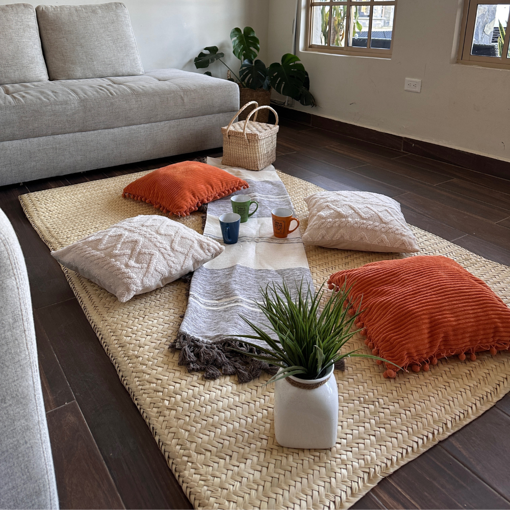Añade un toque natural y auténtico a tu hogar o evento con nuestro tapete tipo petate, tejido a mano en palma. Su textura única y su confección tradicional lo convierten en una pieza decorativa multifuncional para cualquier espacio.