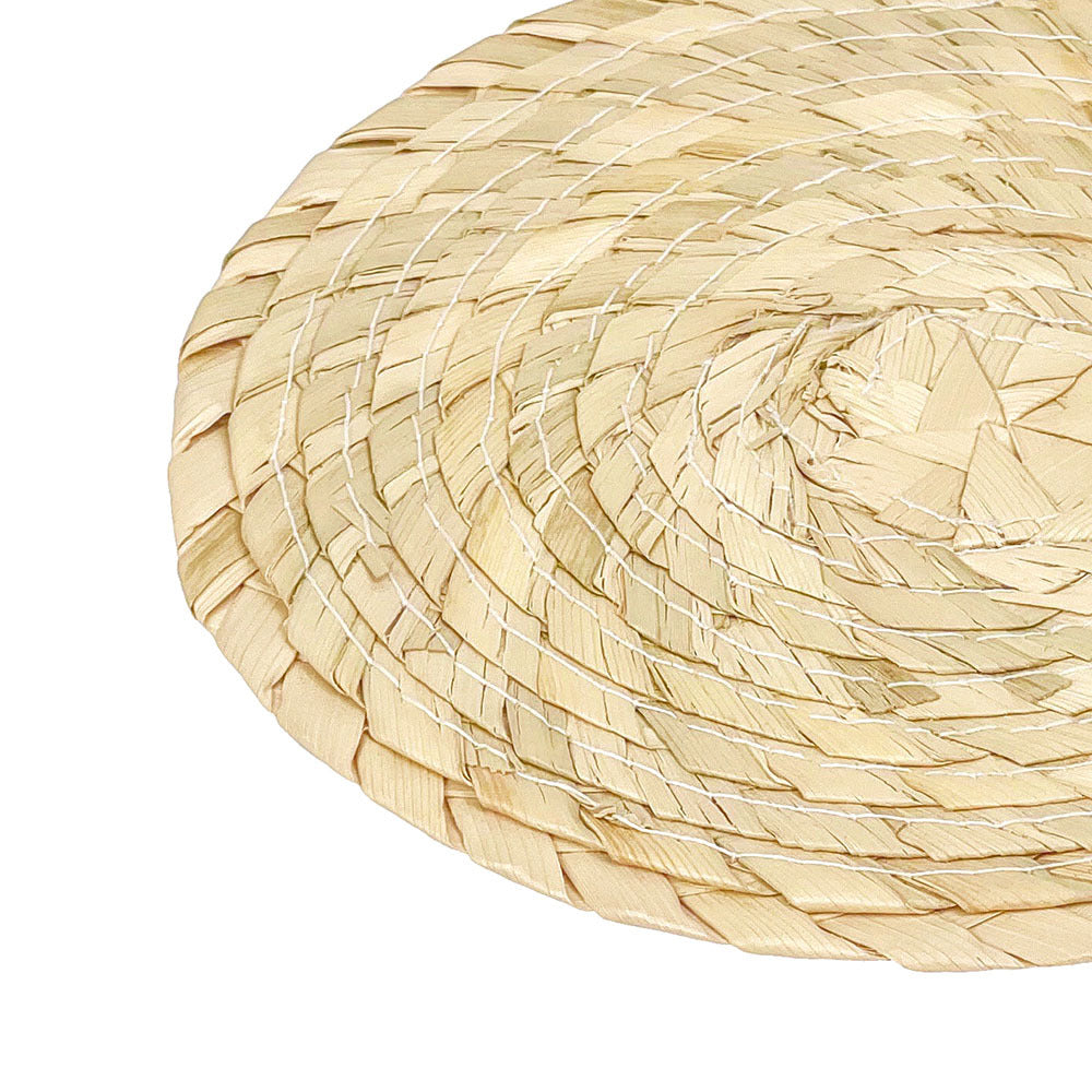 Este posavaso de palma tejido a mano es ideal para proteger superficies mientras agrega un toque natural y rústico a cualquier mesa. Perfecto para complementar nuestros manteles de palma y aportar calidez a tu hogar.